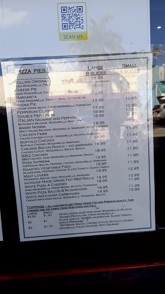 Welcome to Collins Pizza - Artisanal NY Style Pizza, where every bite transports you to the bustling streets of New York. Located at 7308 Collins Ave, Miami Beach, this vibrant pizzeria showcases a menu bursting with authentic Italian classics and artisanal flavors. Start your culinary journey with delightful appetizers such as Grass Fed Beef Meatballs paired with organic marinara, or indulge in mouth-watering Eggplant Parmigiana. The pizzas are a highlight, featuring crispy edges and a variety of toppings that cater to all tastes. Signature options like Double Pepperoni and creative veggie pies are not to be missed.